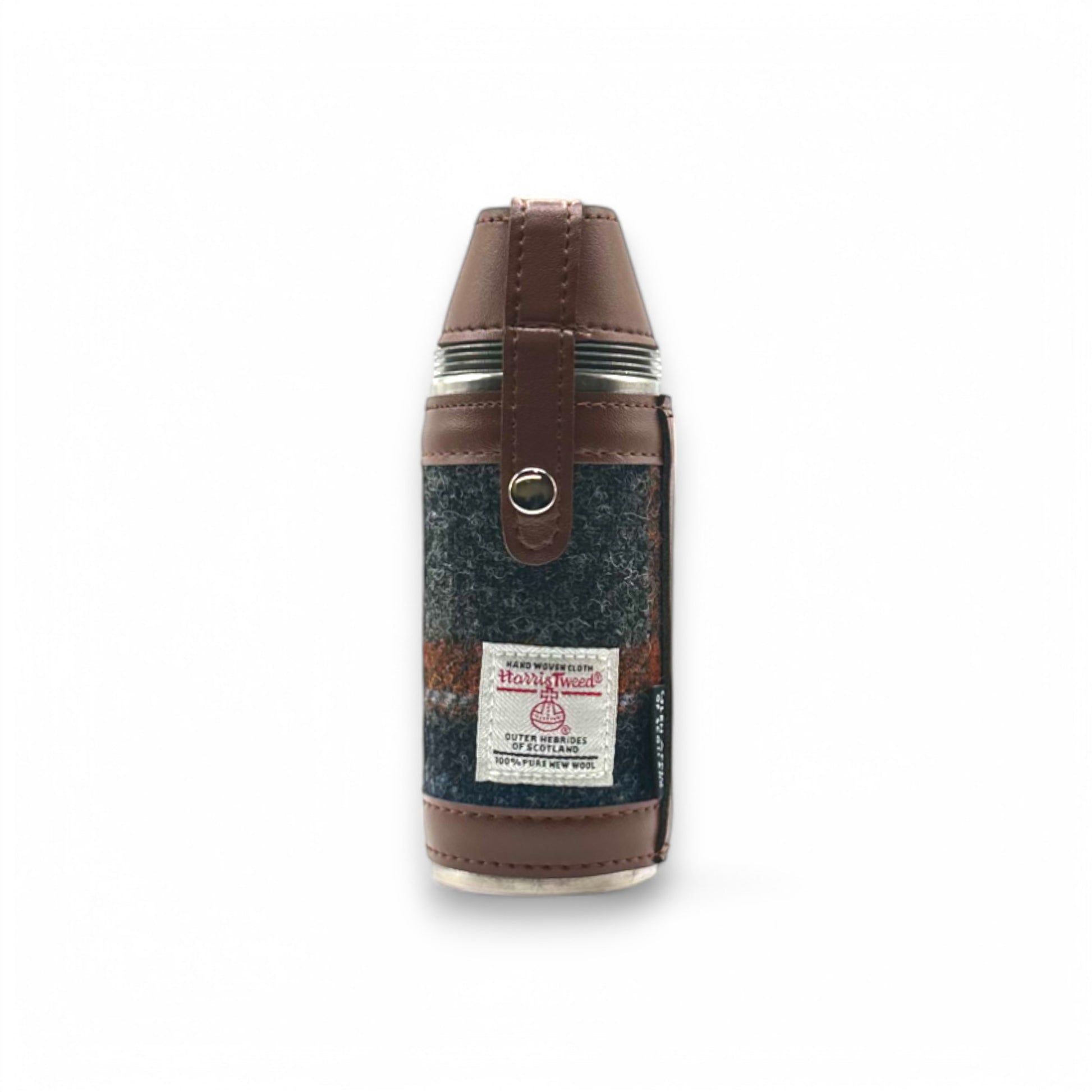 Harris Tweed Compact Hunting Flask - Grey/Orange - 8oz