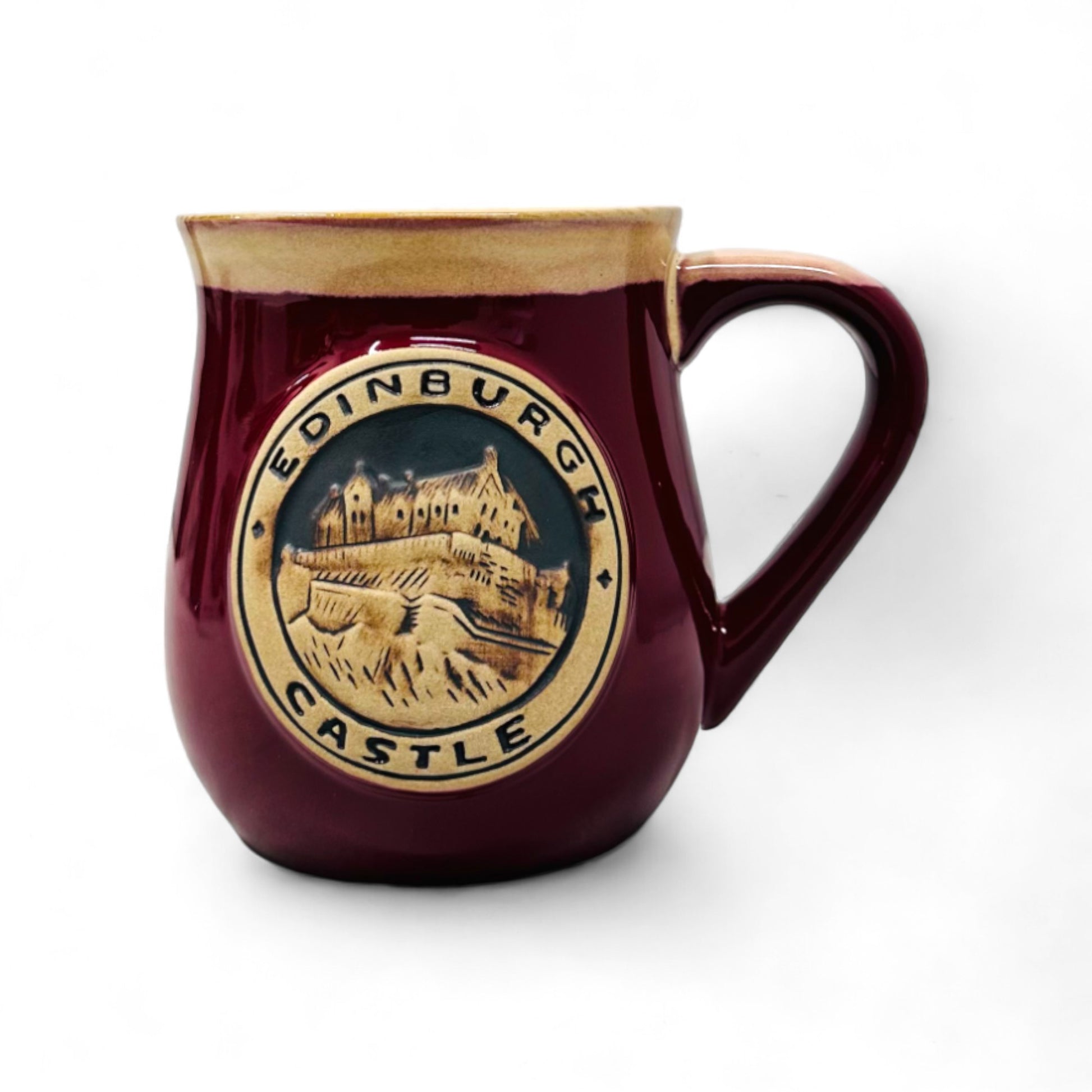 This robust stoneware mug features a detailed Edinburgh Castle design, finished in bold red enamel. Crafted for durability, it keeps drinks warm and resists scratches, making it ideal for everyday use. A distinctive keepsake, celebrating the grandeur of Edinburgh Castle, perfect for gifting or as a personal memento.